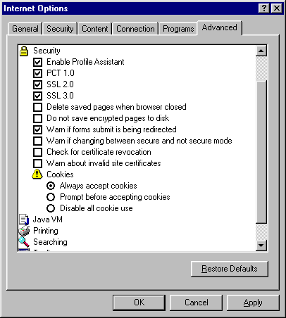 Microsoft's Internet Explorer 4x, it is suggested your browser's security settings