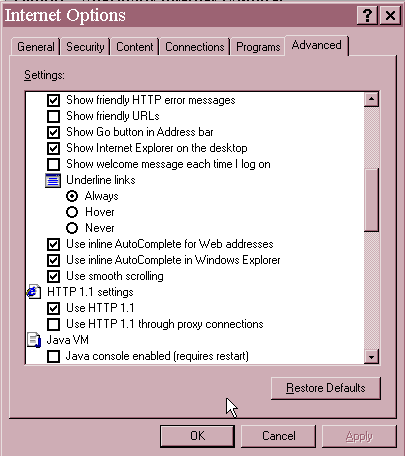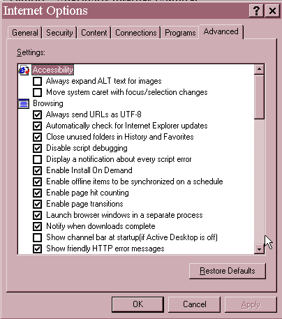 ---> Internet Options from your browser's menu. Then click on the Advanced